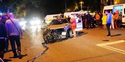 После столкновения машины отбросило за пределы проезжей части на тротуар, где в это время находились пешеходы. Водитель оказался уличным гонщиком.