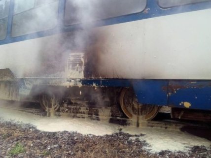 Пожар произошел в трамвае на остановке городского транспорта в Запорожье.