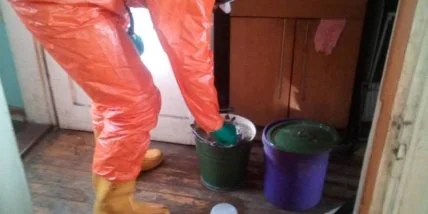 Как выяснилось на месте происшествия, разлив кислоты произошло во время прочистки канализационных труб в ванной комнате. Специалисты ГСЧС провели сбор соляной кислоты с помощью песка, который в потом был утилизирован. В общем собрано 50 г кислоты на площади 3 кв.м.