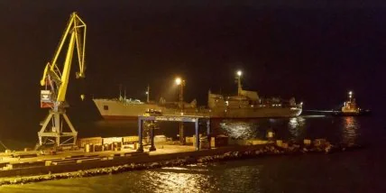Ранее сайт "Украинский милитарный портал" сообщил, что "Донбасс" и "Корец" пришли в порт Мариуполя вечером в понедельник в сопровождении двух малых бронированных артиллерийских катеров. Во время прохождения через акваторию Азовского моря корабли сопровождали российские плавсредства, однако на большом расстоянии.