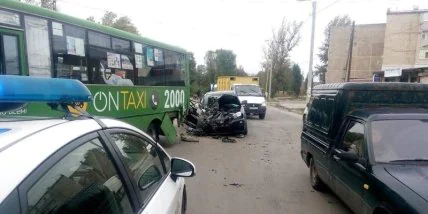 В Харькове BMW врезался в маршрутку, есть пострадавшие