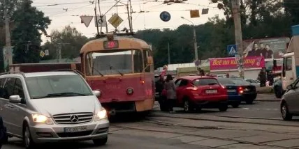 Как сообщают в группе dtp.kiev.ua, один из трамваев сошел с рельсов, в результате чего въехал в бок "коллеги", который двигался в направлении Борщаговки.