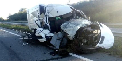 Предварительно, 29-летний водитель микроавтобуса допустил столкновение с полуприцепом грузовика, который двигался впереди под управлением 58-летнего водителя. В результате столкновения водителя микроавтобуса с телесными повреждениями доставили в медучреждение.
