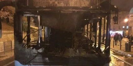 На улице Подвальной во Львове вечером 1 октября загорелся маршрутный автобус.