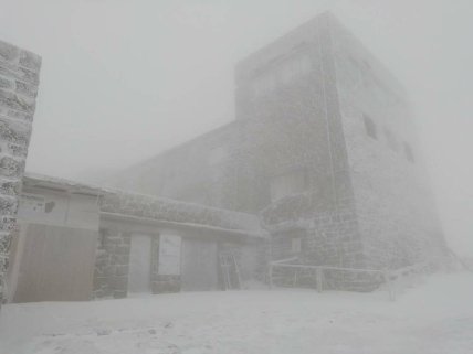 На горе Поп Иван в Карпатах 4 градуса мороза, идет небольшой снег.