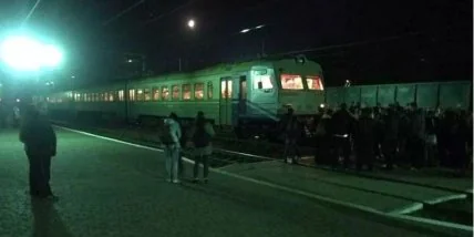 Движение поезда перекрыли люди, которым просто не хватило мест в поезде. Позже на станцию прислали дополнительный поезд.