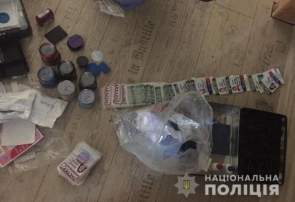 "Следственно-оперативная группа обнаружила более 30 паспортов разных государств, около 500 удостоверений с надписями "Пресса", 23 водительские удостоверения другой страны, а также оттиски для печатей, запал к гранате, пакет с веществом белого цвета и сверток с растением зеленого цвета", - рассказали в полиции.