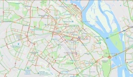 Так, по данным Google Maps, в Киеве на левом берегу столицы движение осложнено на Днепровской набережной, Позняках, Дарнице, в районе "Бориспольской", "Левобережной", на Дарницкой площади, проспекте Соборности. Также пробки образовались на мосту Метро и мосту Патона.
