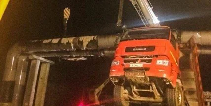 Ночью 14 ноября самосвал компании "СМУ 84", работающей на строительстве подходов к железнодорожному мосту через Керченский пролив, двигался по Феодосийскому шоссе с поднятым кузовом, в результате чего повредил две трубы местной ТЭЦ, сдвинув их с проектной отметки.