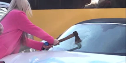 На днях в столице неизвестная блондинка в розовом пальто разгромила спорткар Porsche 718, стоимостью порядка 100 000$, который был припаркован на одном из центральных перекрестков города. Женщина исписала машину надписями "Сволочь" и “Урод” и изрубила ее топором. Как выяснилось, все это оказалось срежесированной постановкой.