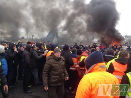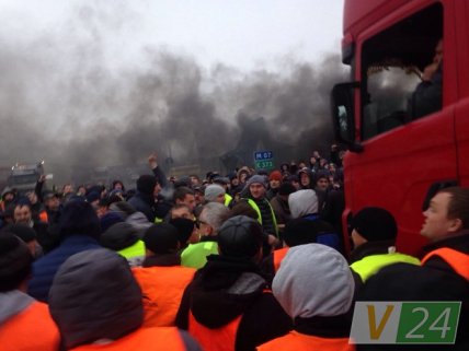 В издании добавляют, что в течение 5 минут сотрудники Нацполиции Украины не вмешивались в происходящее, однако когда митингующие начали бросать в грузовики горящие покрышки, а грузовик начал двигаться на них - вмешался спецназ. При этом водителю-дальнобойщику удалось проехать госграницу, а за ним поехали и следующие пять фур.