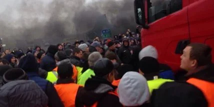 На ПП"Ягодин" произошла потасовка между заблокировавшими его "евробляхерами" и дальнобойщиками.