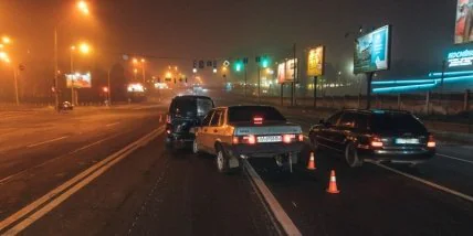 Ночью на Броварском проспекте в Киеве произошло ДТП с участием четырех автомобилей: столкнулись Audi, Chevrolet, Dacia и ВАЗ.