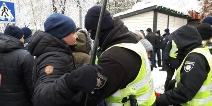 Сотрудники полиции Киева на Софийской площади, где собрались люди в поддержку автокефалии, задержали двух человек с опасными предметами.