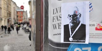 Во Львове 8 апреля в центре неизвестные приклеили на инфостенд черно-белые фотографии с подписью ''Николай Гончаров''.