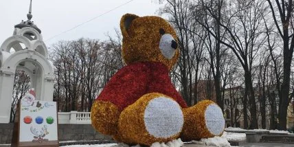 Новогоднее настроение: в Харькове гигантский медведь поет рождественские песни