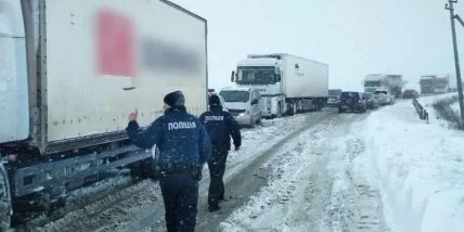 На Николаевщине снежными переметами затруднено движение грузового транспорта на автодороге Кишинев-Платонов.