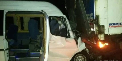 В Обуховском районе водитель маршрутного автобуса "ГалАЗ", выполняя остановку для посадки пассажиров, остановился в правой полосе движения. В это время водитель грузовика "DAF", двигаясь в попутном направлении, осуществил столкновение с автобусом, сообщили в полиции Киевской области. В результате происшествия шесть пассажиров были травмированы и госпитализированы.