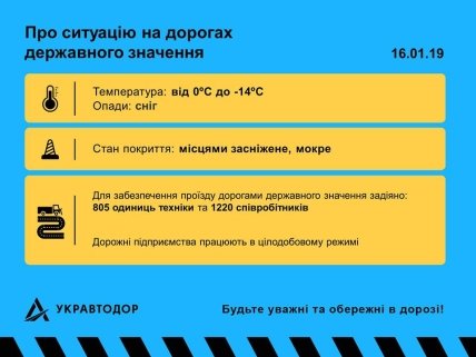 Проезд всеми дорогами государственного значения по состоянию на 8 час. 16 января обеспечен, заторов не зафиксировано. Об этом сообщает Укравтодор в Facebook.