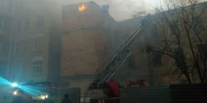 Спасатели ликвидировали пожар в трехэтажном отселенном доме в центре Киева по адресу: ул. Грушевского, 4-б.