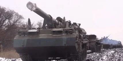 В районе отвода сил артиллерии на Донбассе провели тактические учения экипажи самоходных артиллерийских установок "Пион". Соответствующее видео в пятницу, 18 января, было обнародовано пресс-службой штаба операции объединенных сил на странице в Facebook.