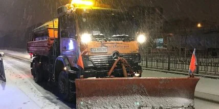 После завершения вечернего часа "пик" на все магистральные улицы столицы для уборки снега вышли большие колонны спецтехники.