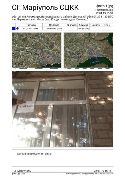 "К счастью, во время обстрелов оккупантами детского сада и жилых домов никто не пострадал. Факт и обстоятельства обстрела вышеуказанного детского сада со стороны наемников вооруженных формирований Российской Федерации нашли свое подтверждение и в ежедневном отчете СММ ОБСЕ, опубликованном 23.01.2019 года", – сказано в сообщении СЦКК.