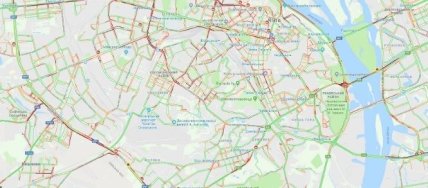 В среду, 30 января, из-за дождя и ДТП большая часть Киева остановилась в пробках. Об этом свидетельствуют данные Google Maps.