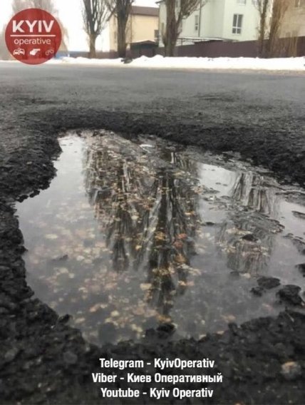 Соответствующие фото опубликовал "Киев Оперативный". "Когда в очередной раз вам будут рассказывать о том, что класть асфальт в снег/дождь "позволяет технология" - покажите им эти фото. Асфальт продержался ровно 55 дней", - говорится в комментарии.