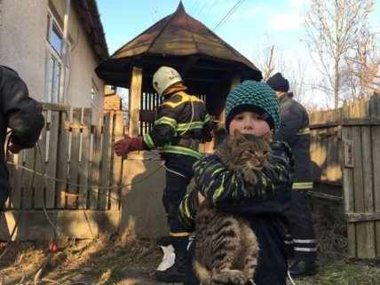 В Киевской области дотла сгорело 12 квартирОдин из пожарных спустился на дно 20-метрового колодца и достал оттуда кота."Испуганного, но счастливого кота бойцы ГСЧС передали в руки маленького владельца Артема", - сообщили в ГСЧС.