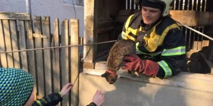 В Киевской области дотла сгорело 12 квартирОдин из пожарных спустился на дно 20-метрового колодца и достал оттуда кота."Испуганного, но счастливого кота бойцы ГСЧС передали в руки маленького владельца Артема", - сообщили в ГСЧС.
