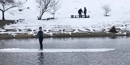 В Киеве подросток оказался на отколотой льдине посреди воды