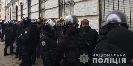 "Неизвестные пытались повредить входные двери, применили газовые баллончики и устроили драку с полицейскими... В результате всех активных участников задержали, а это - около 40 человек. С ними проводят первоочередные следственные действия", - указали в полиции.