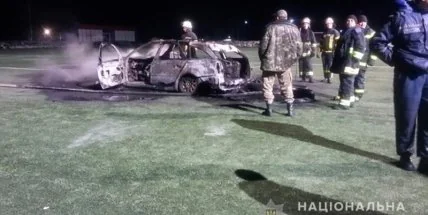 На Киевщине подожгли автомобиль депутата Ирпенского горсовета и сожгли машину на футбольном поле.