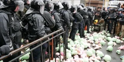 Активисты "Нацкорпуса" забросали правоохранителей игрушечными свинками