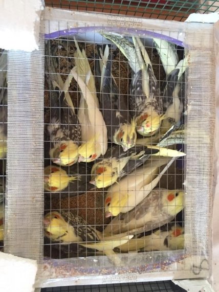 При проверке близлежащей территории, где был задержан мужчина, пограничники обнаружили большой ящик, оборудованный ремнями для удобства переноски, в котором находилось 150 попугаев.