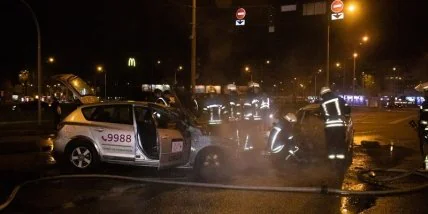 В Киеве ночью столкнулись два такси: обе машины загорелись