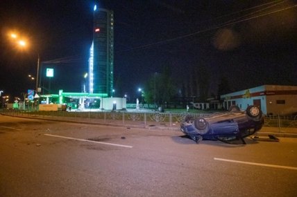 В Киеве возле метро автомобиль вылетел на встречку и перевернулся
