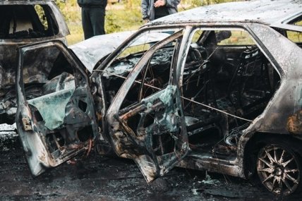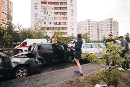 В Киеве на Ларисы Руденко Amulet влетел в припаркованные машины и загорелся.