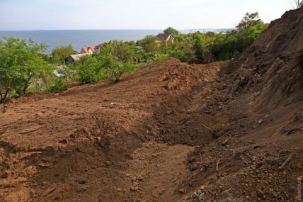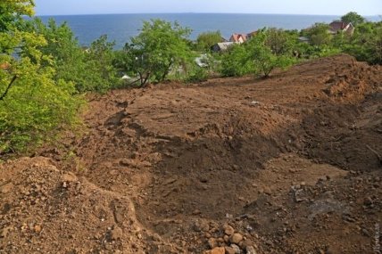 В Одессе в районе 411-й батареи, после сбрасывания самосвалами на склон большого количества грунта, произошел масштабный оползень, сообщает местное издание "Думская".