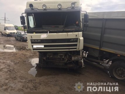 На объездной дороге возле села Усатово Одесской области столкнулись микроавтобус "Мерседес" и грузовой автомобиль "Даф".