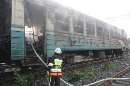Ночью 27 мая в городе Волочиске сгорел моторный вагон электропоезда "Волочиск - Хмельницкий", который находился на отстое без пассажиров.