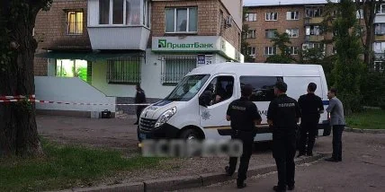 Из фотографий с места события, опубликованных полицией Киева, следует, что инцидент произошел в одном из отделений ПриватБанка.