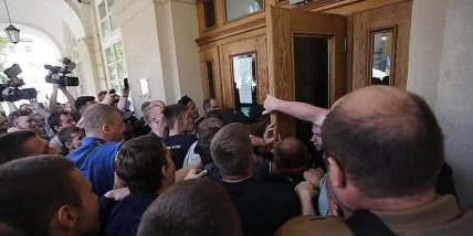 Однако протестующие отказались общаться с представителями мэрии на улицы и начали требовать впустить их в большую сессионный зал и позвать заместителя городского головы по вопросу ЖКХ Сергея Бабака. Когда протестующим отказали в их требованиях, они начали выламывать дверь ратуши.