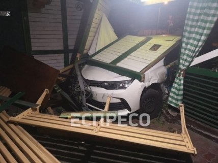 "После удара авто нарушителя изменило траекторию, и, выехав на бордюр и зеленую полосу, врезалось в летнюю террасу кафе. К счастью, в кафе на месте удара в это время никого из посетителей не было", – отмечает СМИ.