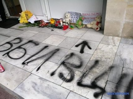 У входа в здание ГУ Нацполиции возложили цветы, детские игрушки, поставили свечи. Участники акции почтили память убитого 5-летнего мальчика из Переяслава-Хмельницкого минутой молчания.