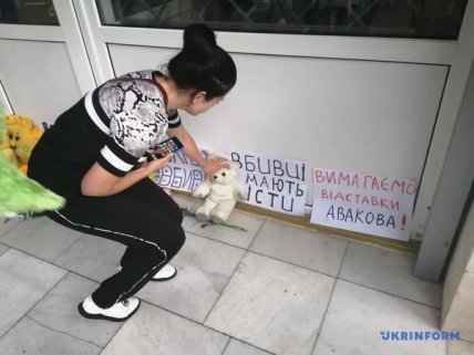 Херсонцы пришли к зданию Главного управления Нацполиции в области с файерами, принесли плакаты, на которых было написано: «Убийцы должны сесть», «Требуем отставки Авакова». Люди выкрикивали: «Авакова в отставку!».