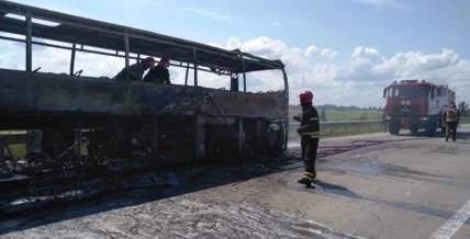 В Житомирской области пассажирский автобус выгорел дотла.