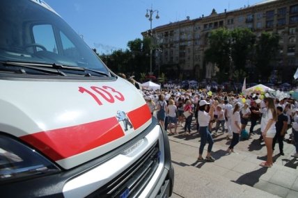 Как сообщили в пресс-службе Киевского городского головы, новенькие «скорые» выставили, чтобы все их могли осмотреть, во время проведения масштабного флешмоба «Медики за здоровый образ жизни», который состоялся на Крещатике.