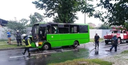 В Харькове загорелась маршрутка с пассажирами, пострадавших нет.